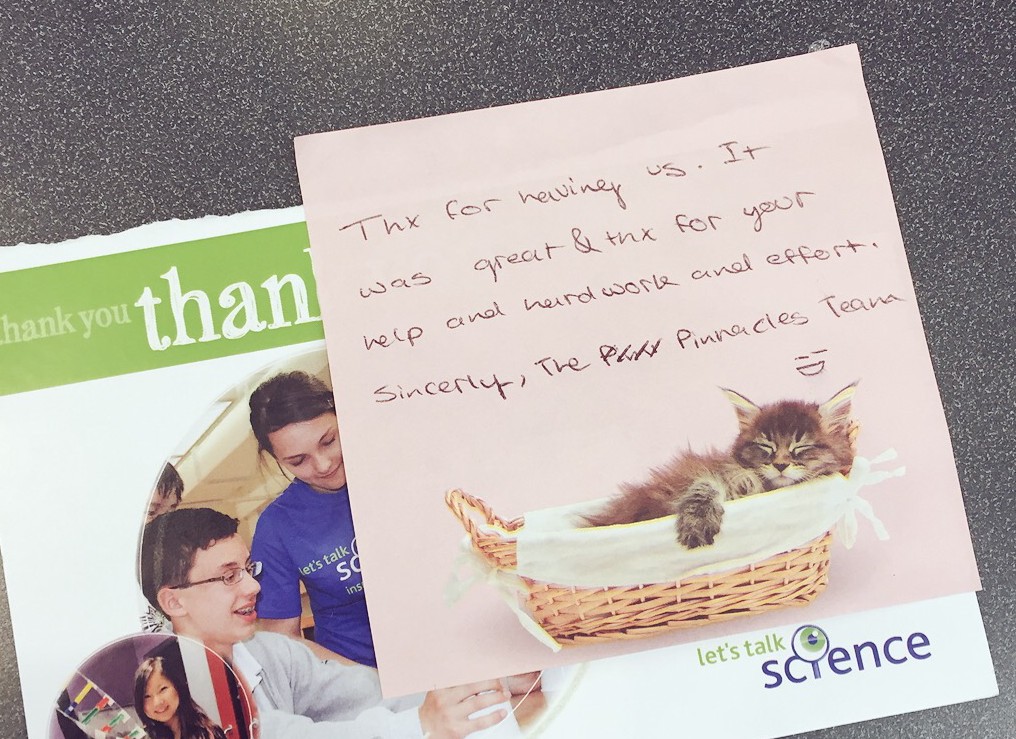 I am so grateful to everyone who made my time as a Let’s Talk Science Outreach Volunteer and Coordinator at UWindsor so amazing. A very heartfelt thank you to Michelle Bondy for taking me on as her assistant this year, to the Let’s Talk Science Outreach Volunteers, and the Dean’s office in the Faculty of Science. I had so much fun doing what I love!