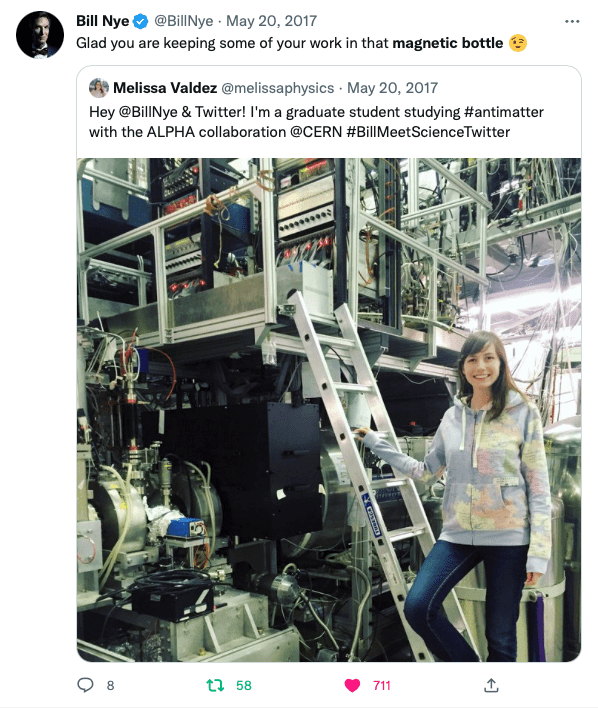 Glad you are keeping some of your work in that magnetic bottle 😉 https://t.co/OyD4Wsm3m4— Bill Nye (@BillNye) May 20, 2017