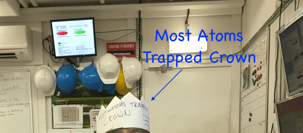 While we were completing this work, every time a new record was set for detected annihilation events (revealing how many antiatoms were accumulated), the person running the main control system received the coveted “MOST ATOMS TRAPPED CROWN.” The rest of the collaboration was notified with an email titled “Long live the queen.” The record for detected annihilation events from a single release of trapped antiatoms at the time of publication is 54, after five cycles of stacking.