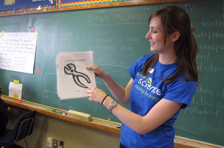 My life changed when I received an email from the Faculty of Science at the University of Windsor in September 2013. It was a call for post-secondary volunteers to participate in a new-to-Windsor nation-wide outreach program by bringing hands-on science to local classrooms and community events. I attended training, brought the It’s Electrifying! workshop to a grade 6 classroom, and I never looked back! I’ve volunteered in dozens of classrooms, hosted several on-campus events for youth, and eventually became an Outreach Site Coordinator!