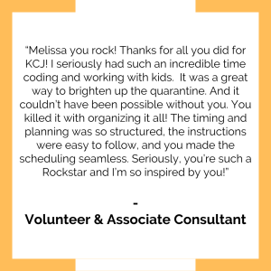 The program was a big hit with parents who were trying to keep their children engaged during the break from school! We filled all 100 spots within 4 days of registration opening, and worked hard to open an additional 50 spots. The program was free so we encouraged parents to donate to KCJ upon registration.