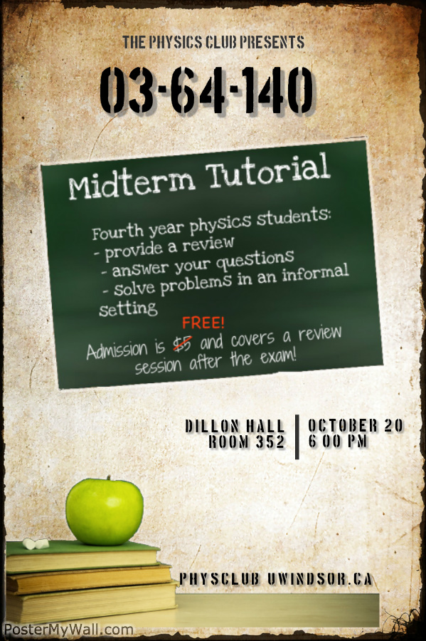 During the 2014-2015 school year we also put together a bunch of organized tutoring sessions. Our fantastic volunteer tutors created exam material and advertised for 2-in-1 tutoring and review sessions (with pizza!). They worked through typical exam-level questions and worked with the students one-on-one. I helped to advertise by creating posters like these!